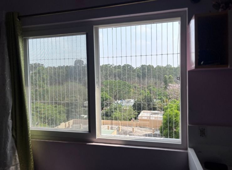Invisible grills for pets’ safety protect your furry friends from accidental falls while allowing fresh air and open views. They are strong, rust-free, and stylish, ensuring a safe and comfortable environment at home.